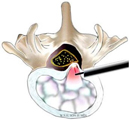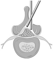 必要に応じてその周囲の骨を削ります。椎間板を切除します。