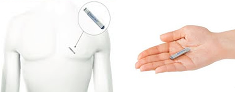 ⑦ 植込み型心電計(心電用ループレコーダ):長期間心電図記録(2-3年)が可能な植込み型記録計の植え込み(診断後、抜去可能)(図)