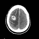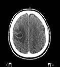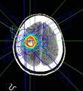 右図:線量分布図です。中心の前立腺(オレンジで囲まれた部分)に線量が集中しているのがわかります。 - 転移性脳腫瘍に対する定位放射線治療
