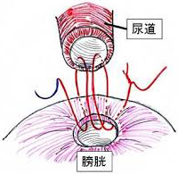 - 尿道断端と膀胱との間を吻合します(図3)。
