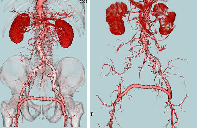 現在、末梢動脈の閉塞性動脈硬化症(ASO)が注目を浴びています。それは、患者様が急増しているという背景もありますが、一番の要因は、"血管内治療における技術革新"によるものです。皆さんも耳にしたことがあるかもしれませんが、「ステントグラフト(ステント)」と呼ばれる器具を使った大血管に対する技術が爆発的な広がりを見せています。こうしたことからもその技術革新の度合いを知ることができます。これから、こうした優れた治療法をご紹介します。