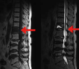 脊椎(背骨)は体の支えとして重要な役割を担っております。ところが脊椎骨折が起こると、体の支持の働きがそこなわれます。特に骨癒合が起こらないと、骨折部(椎体)が不安定になり、不安定性による症状を呈するようになります。 本症の症状は、椎体の不安定性に伴う症状と骨が神経を圧迫する症状に大きく分かれます。椎体の不安定性に伴う症状はひどい腰背部痛などです。