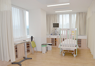 小児科の入院病棟はC棟5階になります。小児科の入院は、原則保護者の付き添いが必要となりますが、お子様一人でも安静を保てると判断される場合(概ね小学校高学年以上)や、重症心身障害児の予定短期入院など、状況により付き添い不要となることがあります。入院時に担当とご相談ください。面会につきましては、原則病院のルールに準じますので、入院時に担当医または担当看護師へお尋ねください。