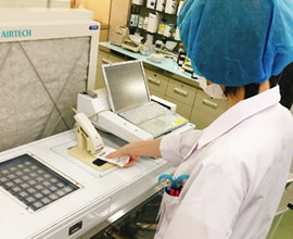 抗がん剤の調製は、薬剤部内に設置された安全キャビネットで無菌的に行っています。