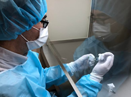 調製を行う薬剤師は専用ガウンを着用し、専用手袋やマスク、ゴーグルを装着しています。