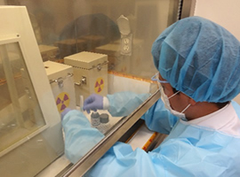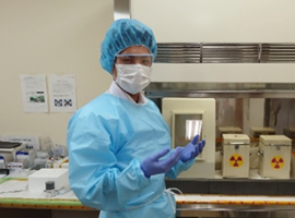 長年慣例的に放射性医薬品は放射線技師が取り扱っていましたが、この状況に対し日本病院薬剤師会などから薬剤師が積極的に関与すべきとの呼びかけがあり、当院でも2018年から一部の放射性医薬品(ゾーフィゴ静注®)の調製を薬剤師が行うようになりました。現在当院薬剤部では「放射性医薬品取扱いガイドライン」に則り、放射線技師と連携し、より安全に放射線治療が行えるよう取り組んでいます