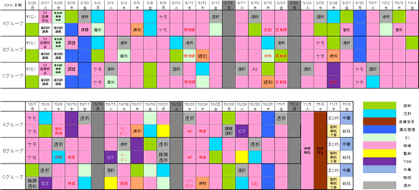 【例】薬学部5年生の実務実習のスケジュール