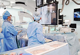 例えば、患者様の病状によっては、一部は外科的手術、一部は内科的カテーテル治療が必要な場合がありますが、外科と内科の同時施術が可能なことから、従来は2回に分けて行っていたものを、1回で済ますことができます。回数が少なくて済めば、それだけ、お体への負担が少なくなり、回復も早まります。
