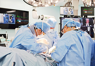 また、ハイブリッド手術室の環境は、麻酔科を含む外科系、内科系の各診療科の医師、および看護師、臨床工学技士、診療放射線技師といった医療スタッフの迅速かつ緻密な連携を具現化し、チーム医療による最新の医療技術への道を開きます。