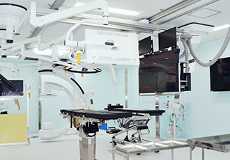 ハイブリッド手術室とは、手術台と心・脳血管X線撮影装置を組み合わせた治療室で、カテーテルによる低侵襲の血管内治療と、高精度の外科的治療を同時に行うことができる設備です。