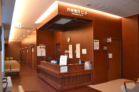 | 1F | 受付 ⑧、⑨ ■外来診察室、 □脳神経内科 □脳神経外科、 □アレルギー膠原病科、 □消化器内科、 □循環器内科、 □腎臓内科、 □心臓外科、 □血液内科、 □糖尿病・代謝・内分泌内科、 □形成外科、 □皮膚科 ★A棟・B棟への連絡通路 |